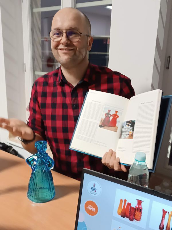Uczestnicy poznali także kontekst kolekcjonowania i użytkowania szkła z Ząbkowic oraz mieli okazję zapoznać się z publikacjami książkowymi, katalogami wytwórni i wystaw oraz książkami poświęconymi zarówno samej hucie, jak i polskiemu wzornictwu.